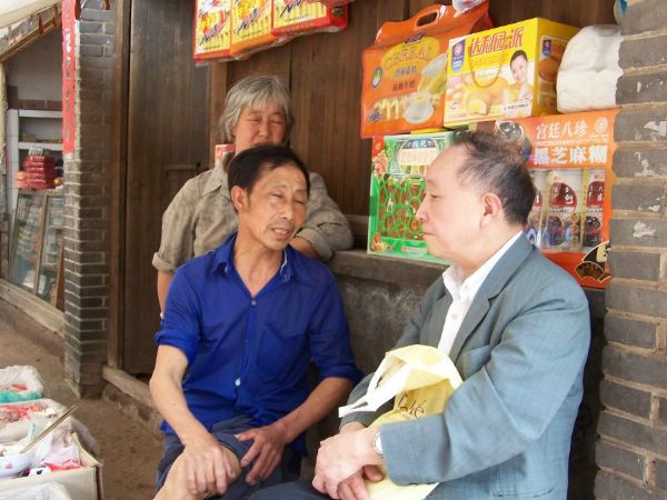 | 据老板说,镇上没有什么刘氏宗祠之类,于是我们的活动,除了体验一下我们先辈曾经生活过的地方,此外就集中于寻访刘光第的遗迹了。 吃完饭,在镇上问了几个人,都不知刘光第旧居,最后遇到一位摆摊的有心人,他知之较多,于是请他带路当导游。 图3:与摊主交谈 |