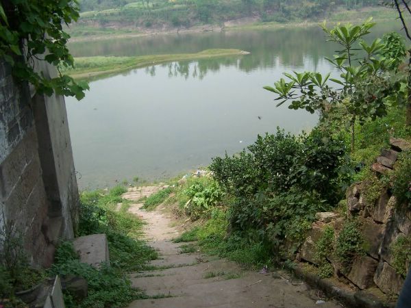 | 当年刘光第进京、后来灵柩回乡都是走的水路,从赵化镇乘船到泸州就入了长江(刘诗云:"朝发家门前,晚泊泸城滨")。赵化镇当年的繁华,看来与交通要道有关,而现在的沱江,修了水电站,不再作为航道,近年四川多旱,江水也半枯了。这就是人力对自然的改造吗?另外此处历史上盛产丝绸,可惜现在已经绝迹,想买点作为纪念品也没有。 | 图9:今日沱江 |