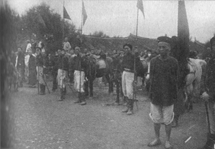 李鸿章的卫队。李鸿章的护卫队员是从他手创的淮军中选拔出来的。李居住贤良寺西三跨院时,这一百名“身穿灰呢窄袖衣”,肩扛洋枪的卫队就住在西二跨院。