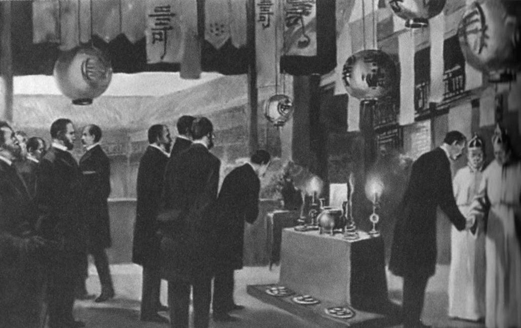 欧美等国公使前往贤良寺吊唁李鸿章逝世。所在场所是在庭院中搭的临时凉棚。当时中外人士前来吊唁的当不下千人。