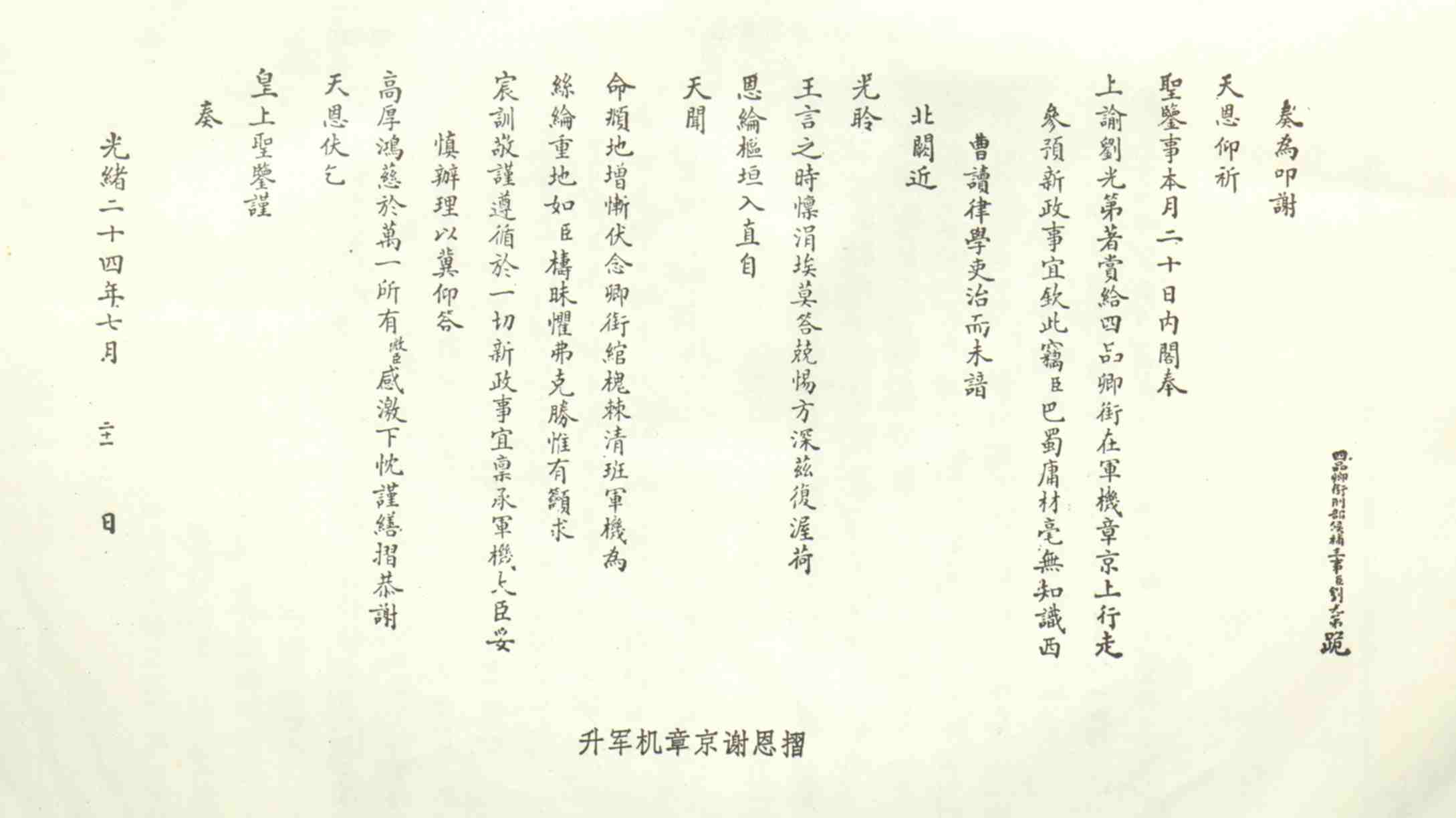 刘光第入军机的谢恩折